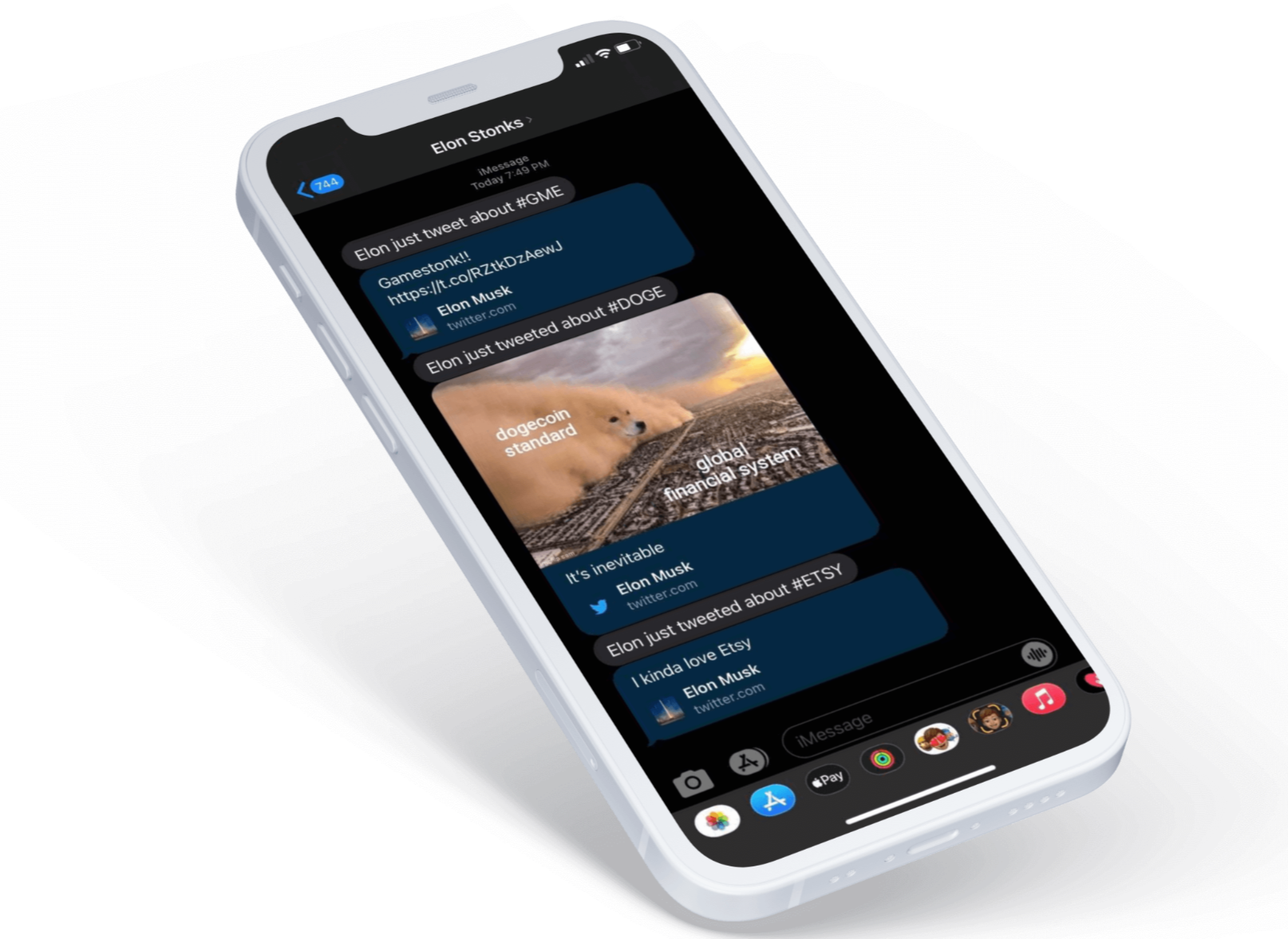 When Elon mentions a stock in a tweet, we'll send you a text*. Stonks to the MOON!
